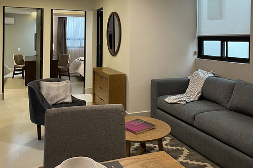 Moderna Suite cuenta con 2 cuartos, 2 baños completos.