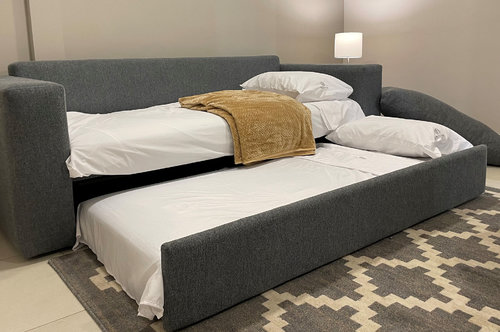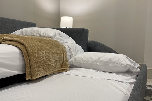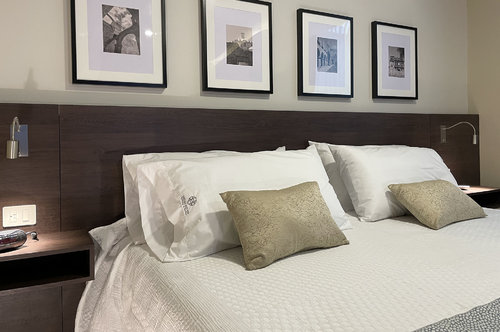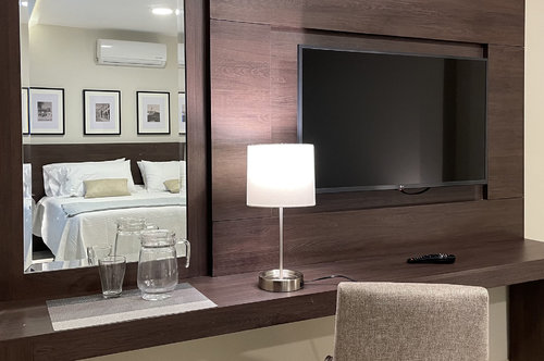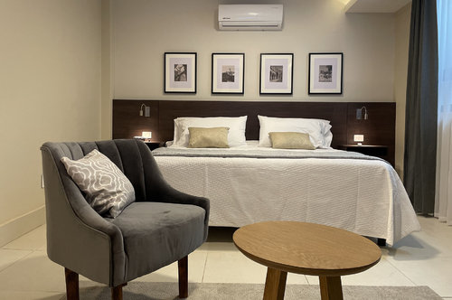 Moderna suite con 1 cama king Size, un sofa cama y un baño completo.