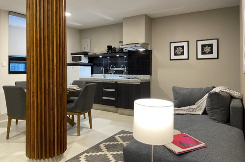 Adicional cuenta con cocineta, WIFI, secadora de cabello, plancha, televisión HD, aire acondicionado, calefacción y amenidades de baño, (Toallas, papel higiénico, sábanas y jabón).